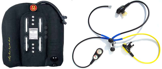 – Arnés: Tipo de arnés adaptado al buceo. Se engancha en el centro de gravedad.